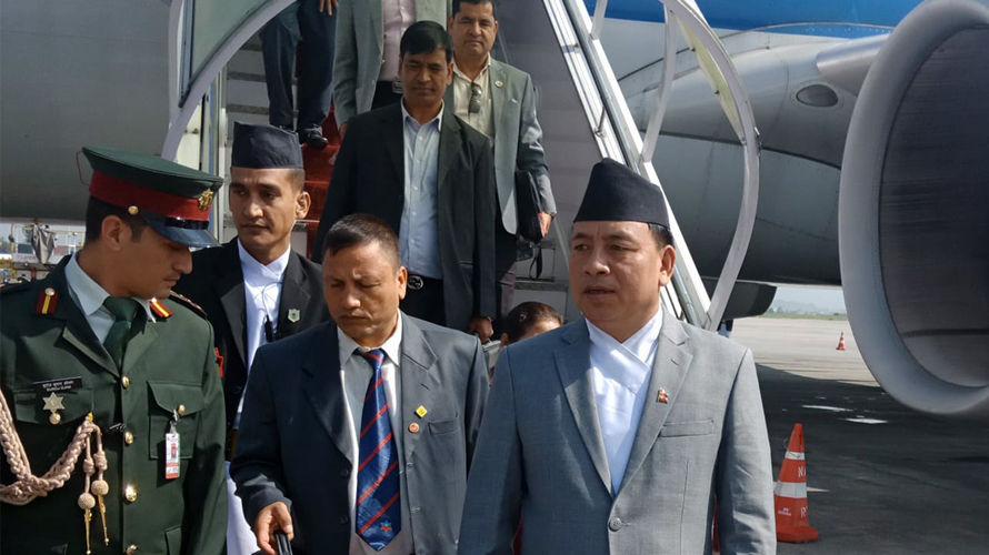 ८ असोज, काठमाडौं । उपराष्ट्रपनि नन्दबहादुर पुन ६ दिने चीन भ्रमण पूरा गरी सोमबार बिहान स्वदेश फर्किएका छन् । उपराष्ट्रपति पुनलाई त्रिभुवन अन्तर्राष्ट्रिय विमानस्थलमा सभामुख कृष्णबहादुर महराले स्वागत गरे ।