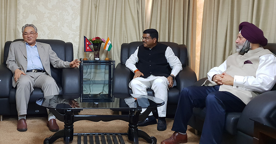 १२ असोज, काठमाडौं । गृहमन्त्री रामबहादुर थापा’बादल’सँग नेपाल भ्रमणमा रहेका भारतका पेट्रोलियम तथा प्राकृतिक ग्यास सम्बन्धी मन्त्री धमेन्द्र प्रधानले शुक्रबार शिष्टाचार भेटवार्ता गरेका छन् ।