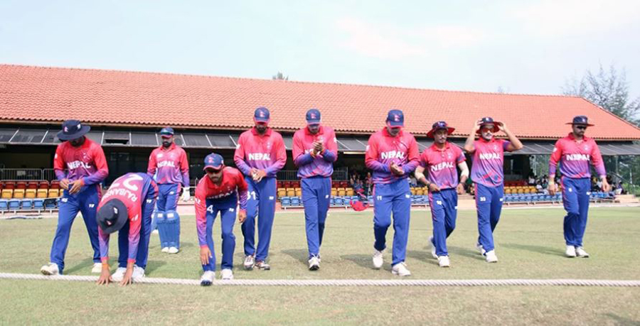 असाेज, काठमाडौँ । आइसिसी टी–२० विश्वकपअन्तर्गत एसिया छनोट प्रतियोगितामा नेपालले लगातार तेस्रो जित हात पारेको छ। नेपालले आइतबार भएको आफ्नो तेस्रो खेलमा थाइल्यान्डलाई डिएल मेथडको आधारमा १४० रनले पराजित गरेको हो।नेपालले पेश गरेको १७३ रनको विजयी लक्ष्य पछ्याएको थाइल्याण्डले ८ ओभर ५ बलमा ९ विकेट गुमाउँदै १८ रन जोडेको थियो । त्यसपछि खेल प्रभावित हुँदा नेपाल डीएल मेथोडमा १४० रनले विजयी भयो । नेपाली बलरसामु थाइ ब्याट्सम्यान निरीह देखिए । यसक्रममा सन्दीप लामिछानेले ५, करण केसीले ३ तथा ललितनारायण राजवंशीले १ विकेट लिए ।